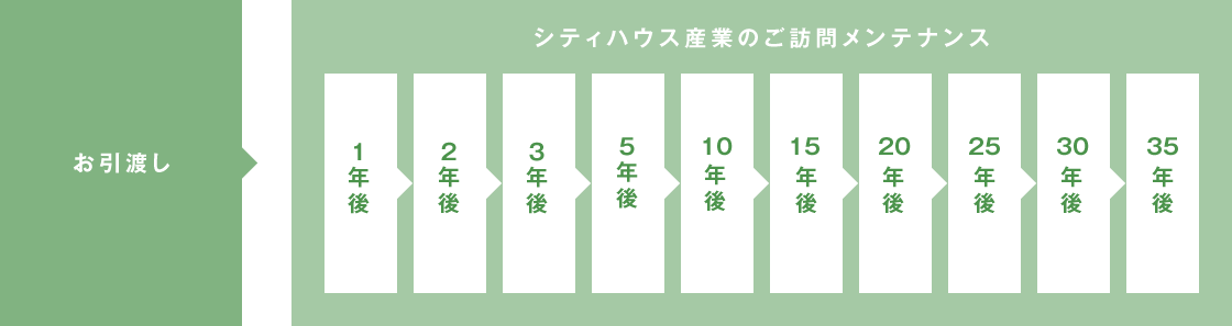 お家の完成&お引き渡し後、出来るだけ事前に不具合報告を解消できるように定期点検を実施しています。 1年、2年、5年、10年、15年、20年、25年、30年、35年という節目での点検。「新築なのに何で引渡し直後にそんな頻繁に点検するの?」と思われますよね?