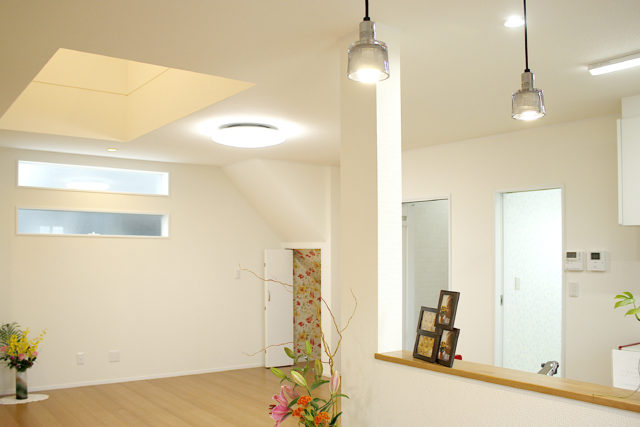- 吹き抜けに設置した窓から沢山の日差しを取り込んで、明るいLDKに出来る