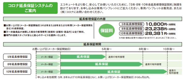 コロナ延長保証(引用元:コロナ エコキュートカタログ)