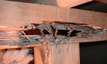 シロアリの被害状況(弊社が採用している予防薬メーカーのHPより引用)