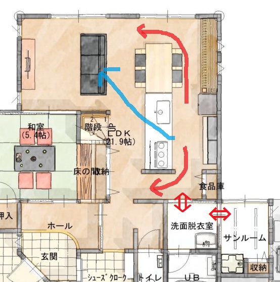 もちろん回遊出来る分スペースが必要となり、リビング等の人がいる空間を圧迫してしまう面もありますが、便利に勝るものはないとご判断されるようでしたら、採用をご検討してみてはいかがでしょうか。