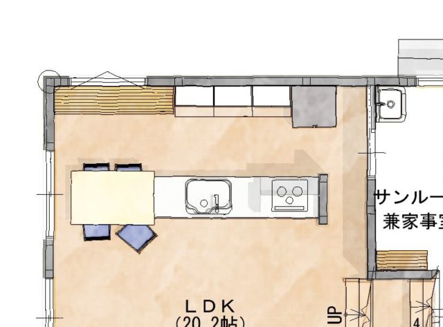 家づくりを検討されている方にとっては当たり前の知識だと思いますが、間取りを考える上で水廻りの便利な動線(数歩で行き来出来る距離)を作るのは必須項目となっています。唯一、除外されるのはトイレだけでしょうか。