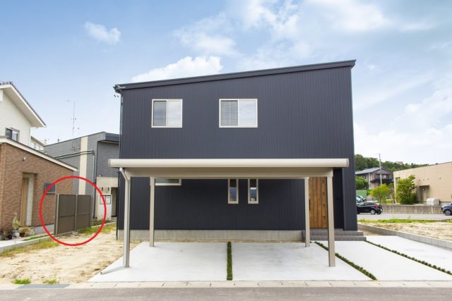 先日お引渡ししたS様邸。リビングに設けた大きな窓が隣家の玄関付近と位置が重なってしまい、目隠し用のフェンスを設置しました。