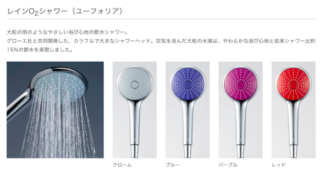 ここで一つ考慮したい事があります。今のお風呂では標準仕様で節水型シャワーがついてきます。(下の写真はLIXILさんの節水型シャワー【レインO2シャワー】です。以前発売していたエコフルシャワー(※それまでの従来品より47%の節水効果)より15%の節水が見込める商品です。)したがって、シャワーのみの場合は、水量的にもエコとなる可能性があるいう訳です。(お湯を使わないという事は沸かすエネルギーも少なくなるので、光熱費的にもエコとなる可能性があります。)