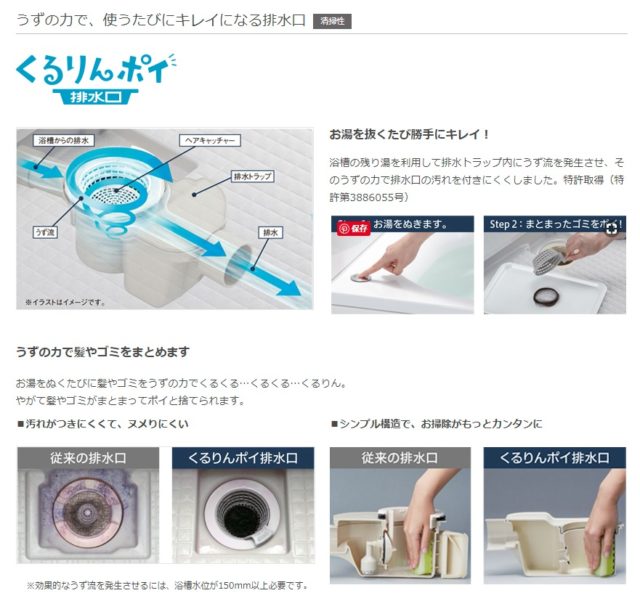 お風呂の排水口 くるりんポイ(引用元:LIXIL HP)