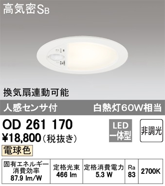 トイレの人感センサー付のダウンライト