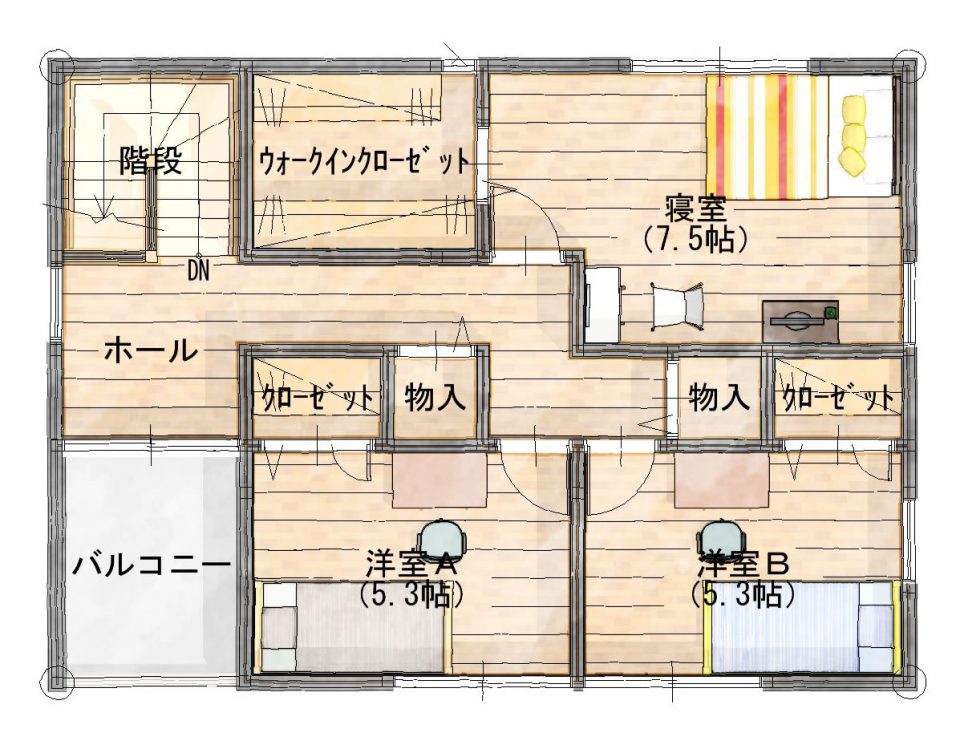 2Fの、子ども室は子どもの成長に合わせて仕切れるようにプラン。