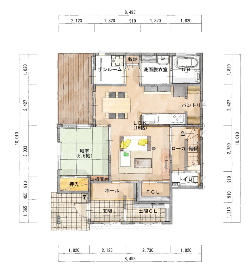 またサンルームからもウッドデッキに出入りできような配置ですので、天気の良い週末はウッドデッキに洗濯物を干したりと大活躍してくれます。